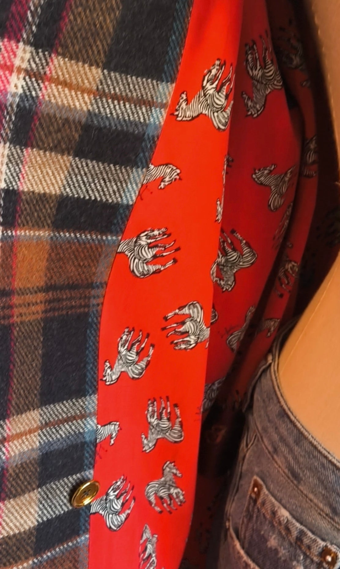 Cappotto, pezzo unico, con maniche raglan, realizzato su misura per Maria Chiara con un mix di lane inglesi a contrasto. All'interno un contrasto effetto WOW con la viscosa rossa fantasia zebre.