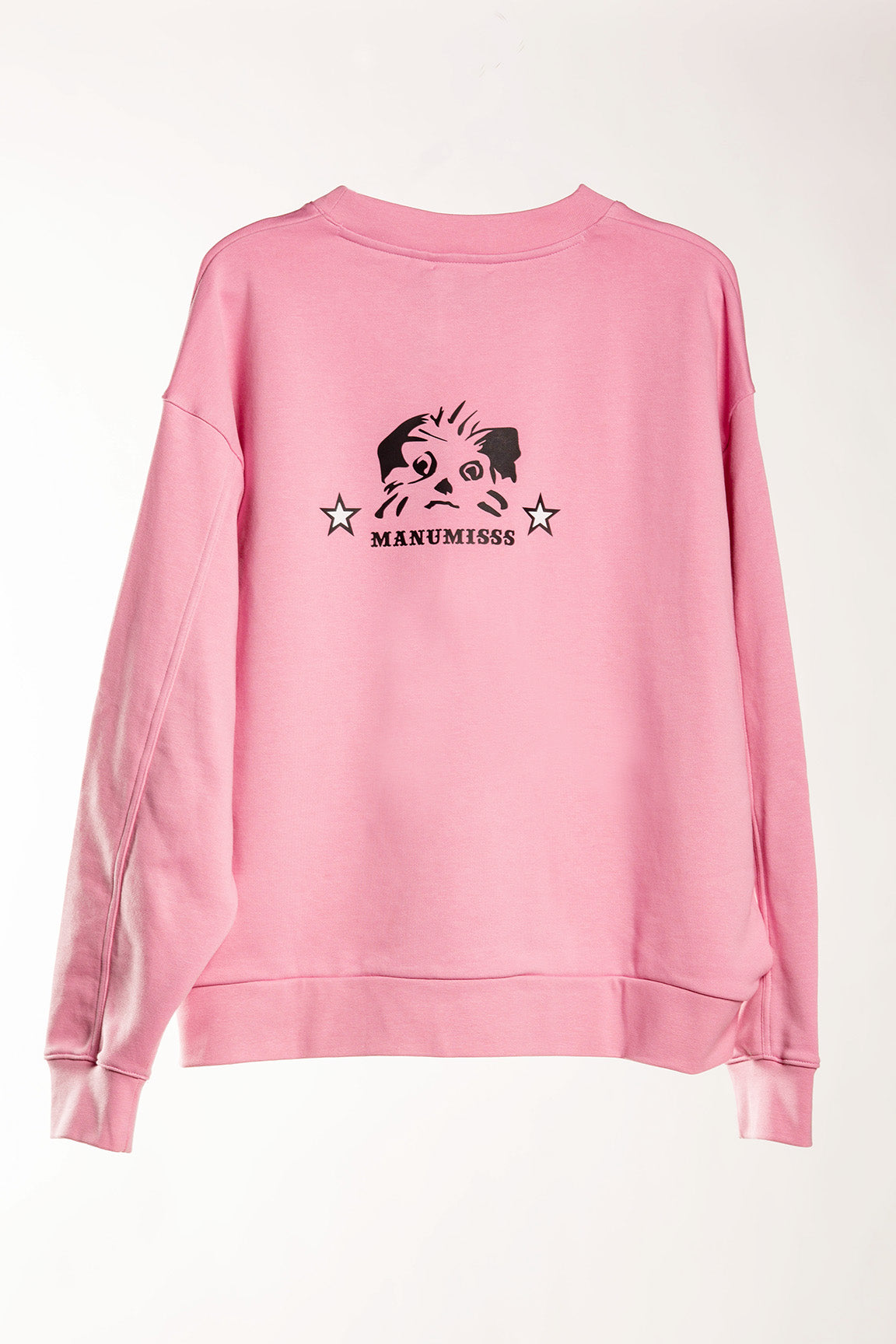 Felpa rosa ampia con stampa MANUMISSS davanti e dietro