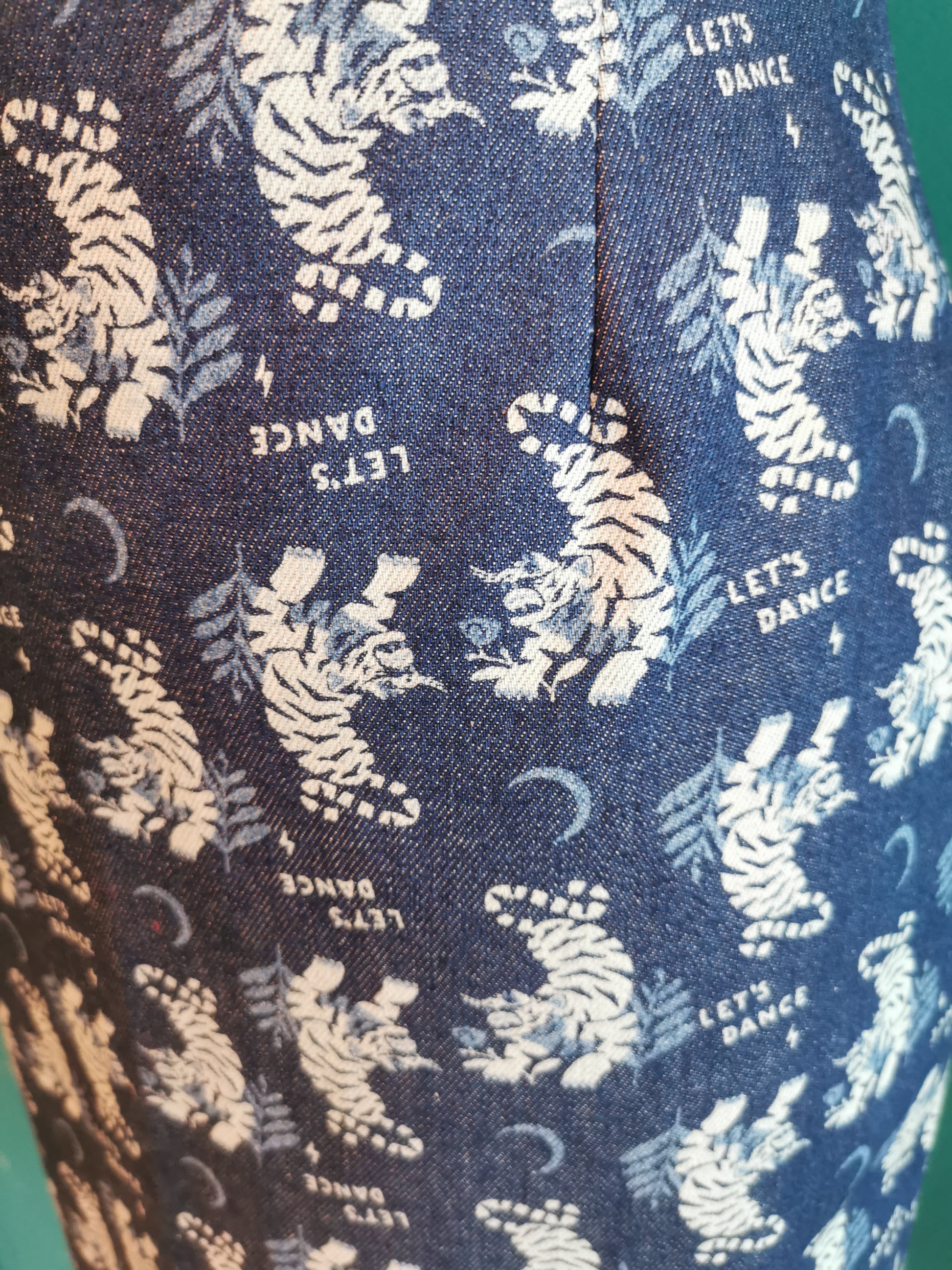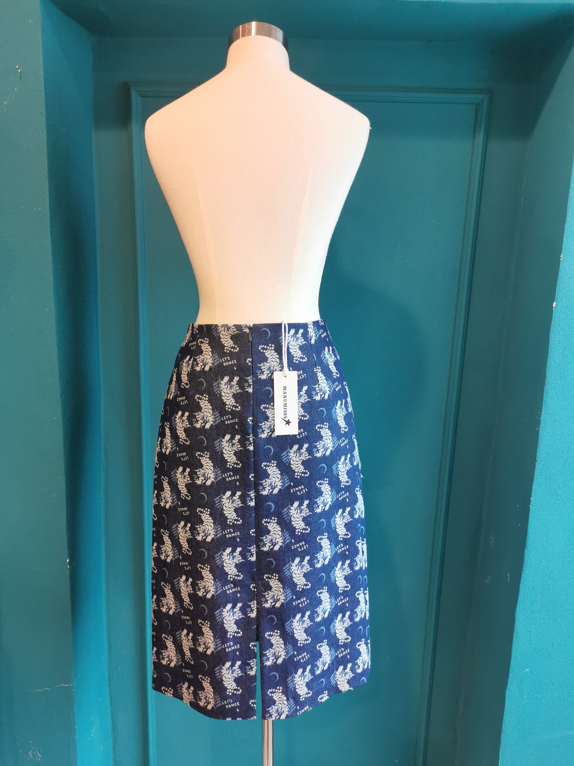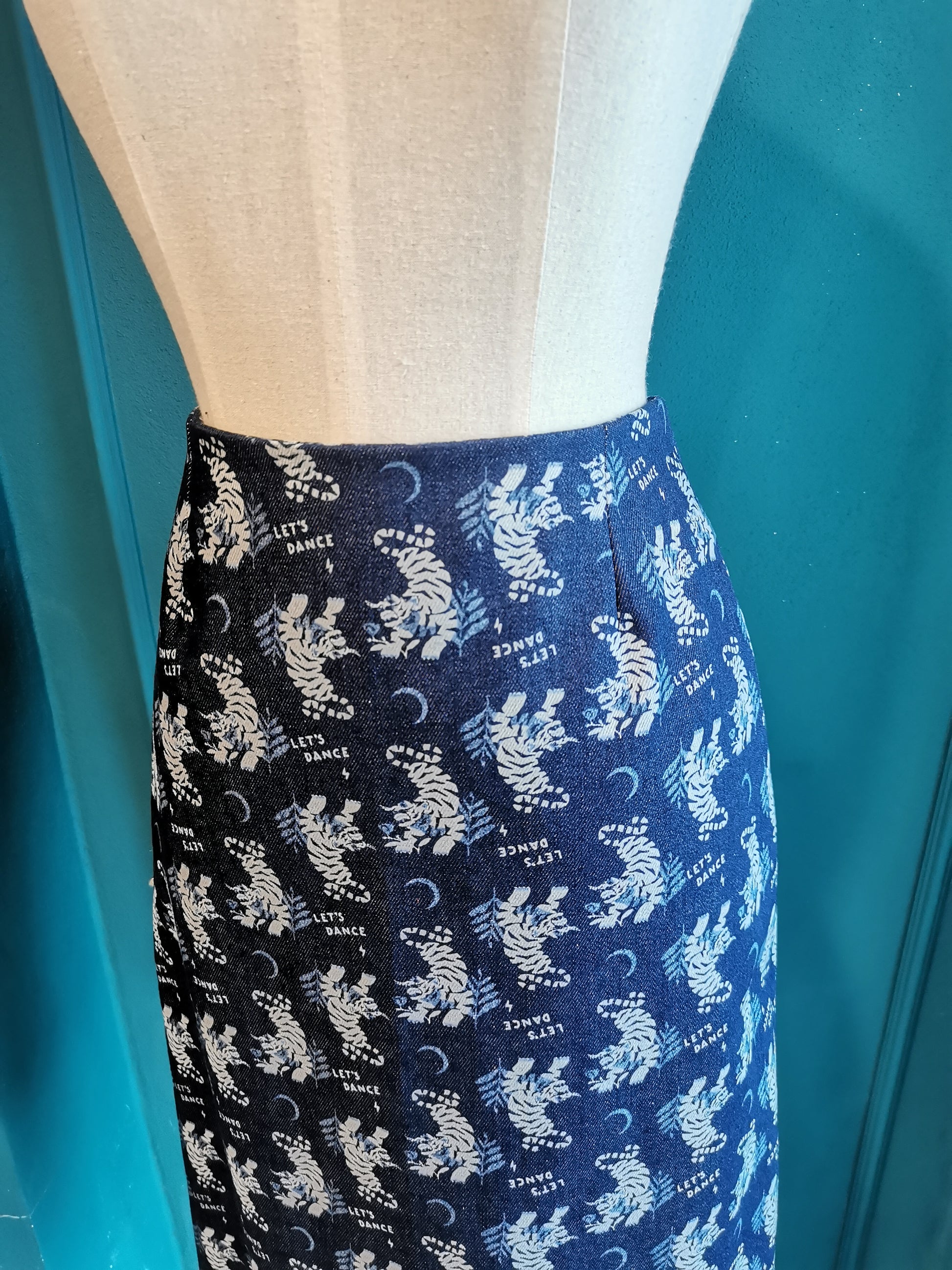 Gonna longuette elasticizzata in tessuto jeans "tigri".