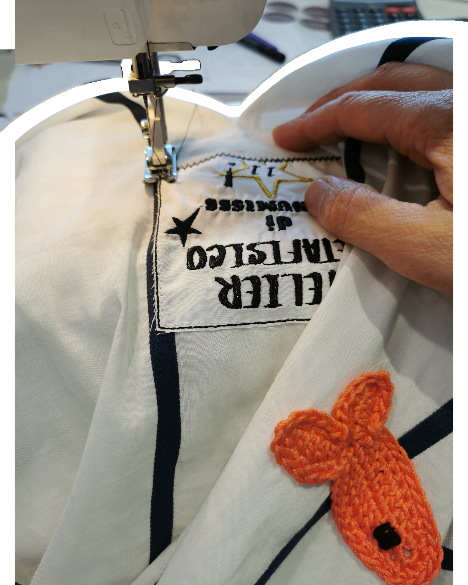- Realizzazione interamente eseguita a mano con macchina da cucire rasafilo e tagliacuci professionali