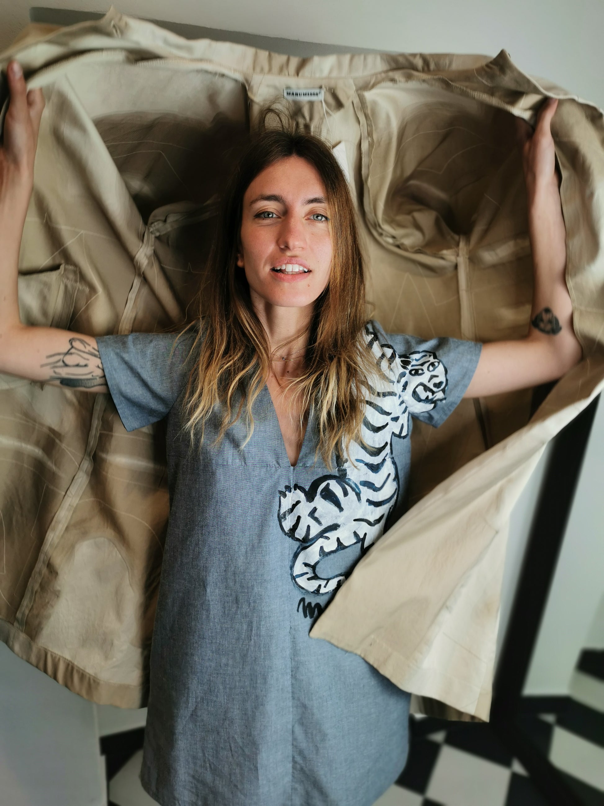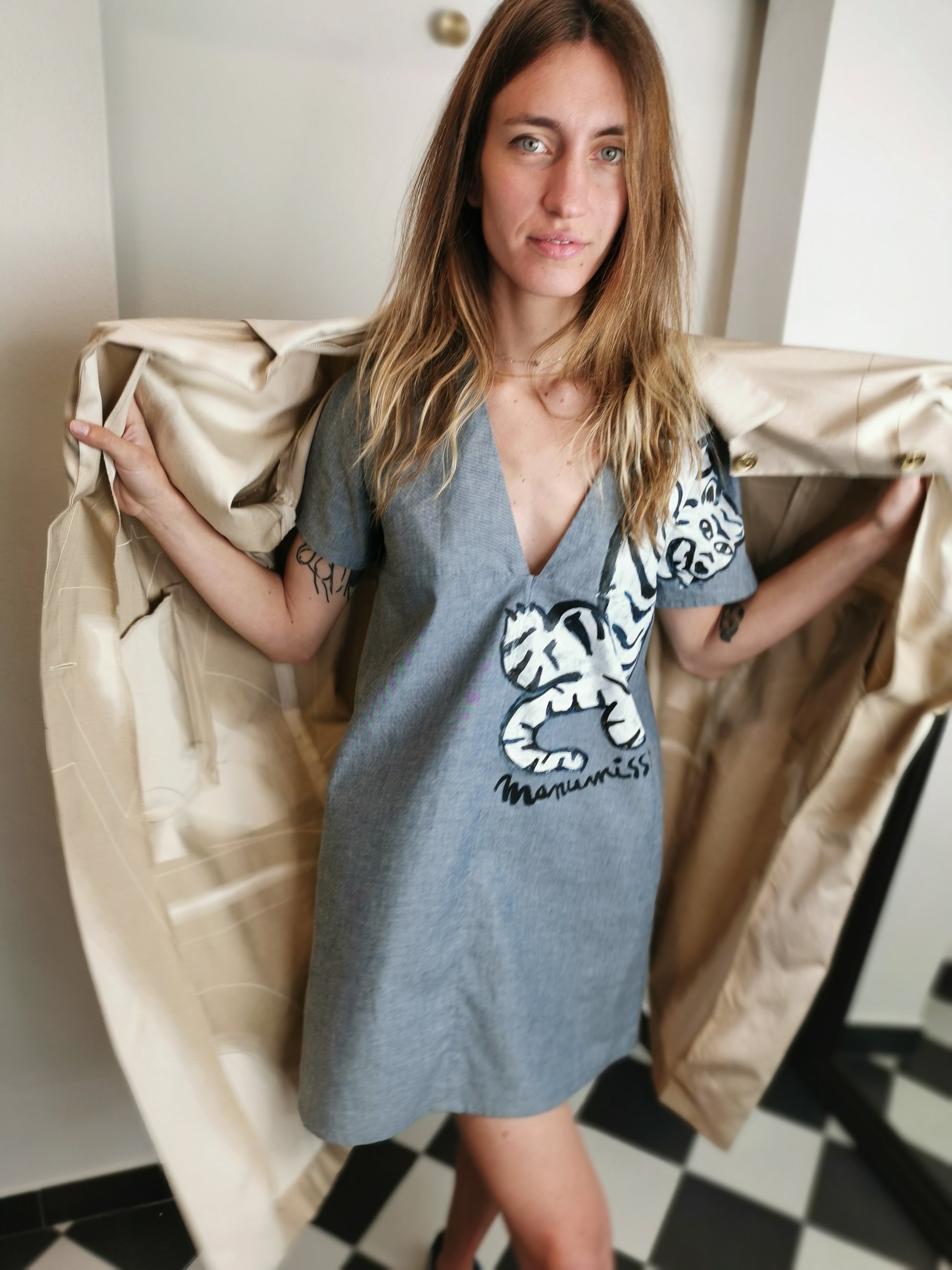 Soprabito sartoriale manica raglan, fila di bottoni dorati decorativi sul retro *pezzo unico