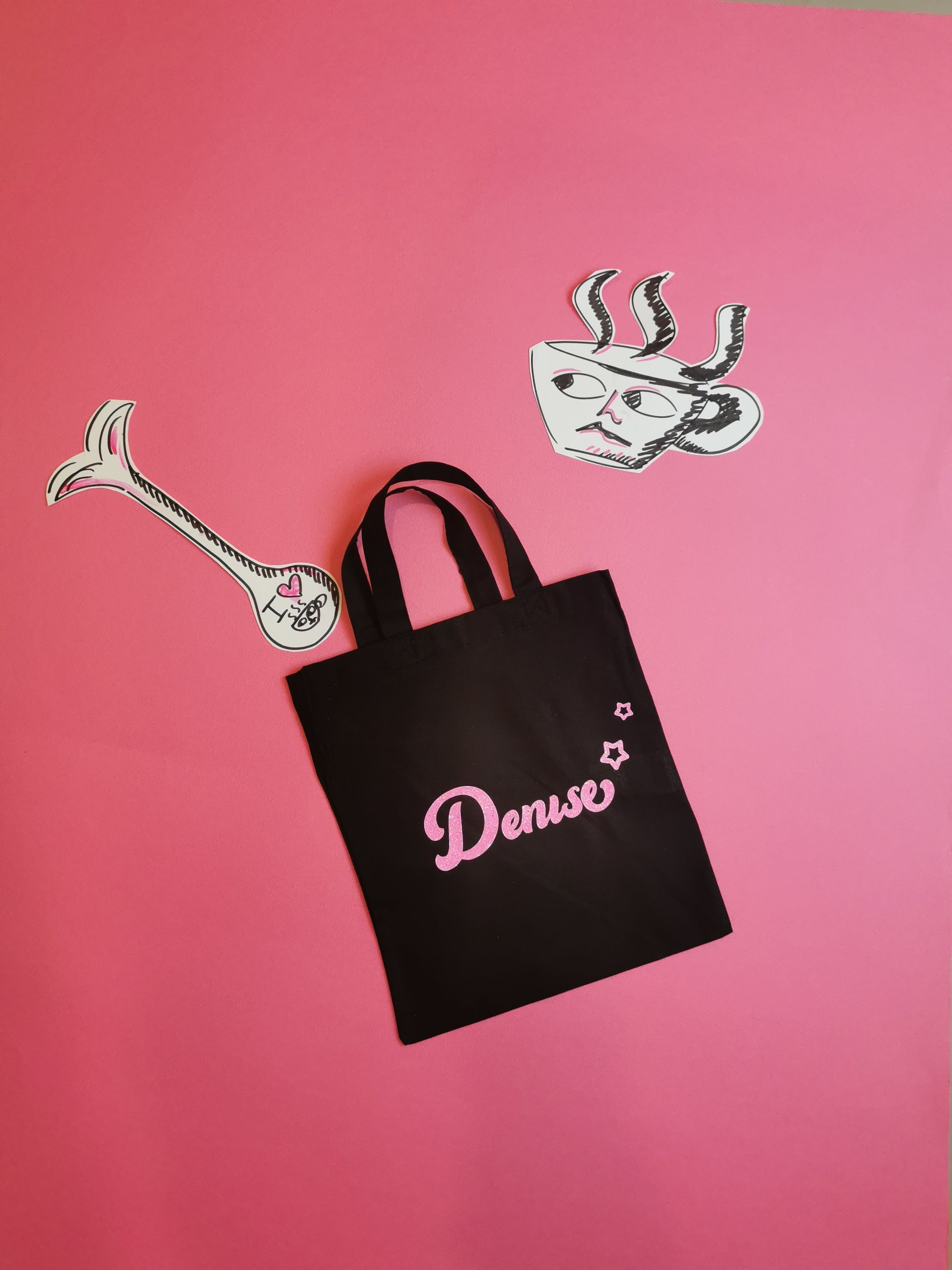 Confezione borsetta in cotone con stampe coordinate.