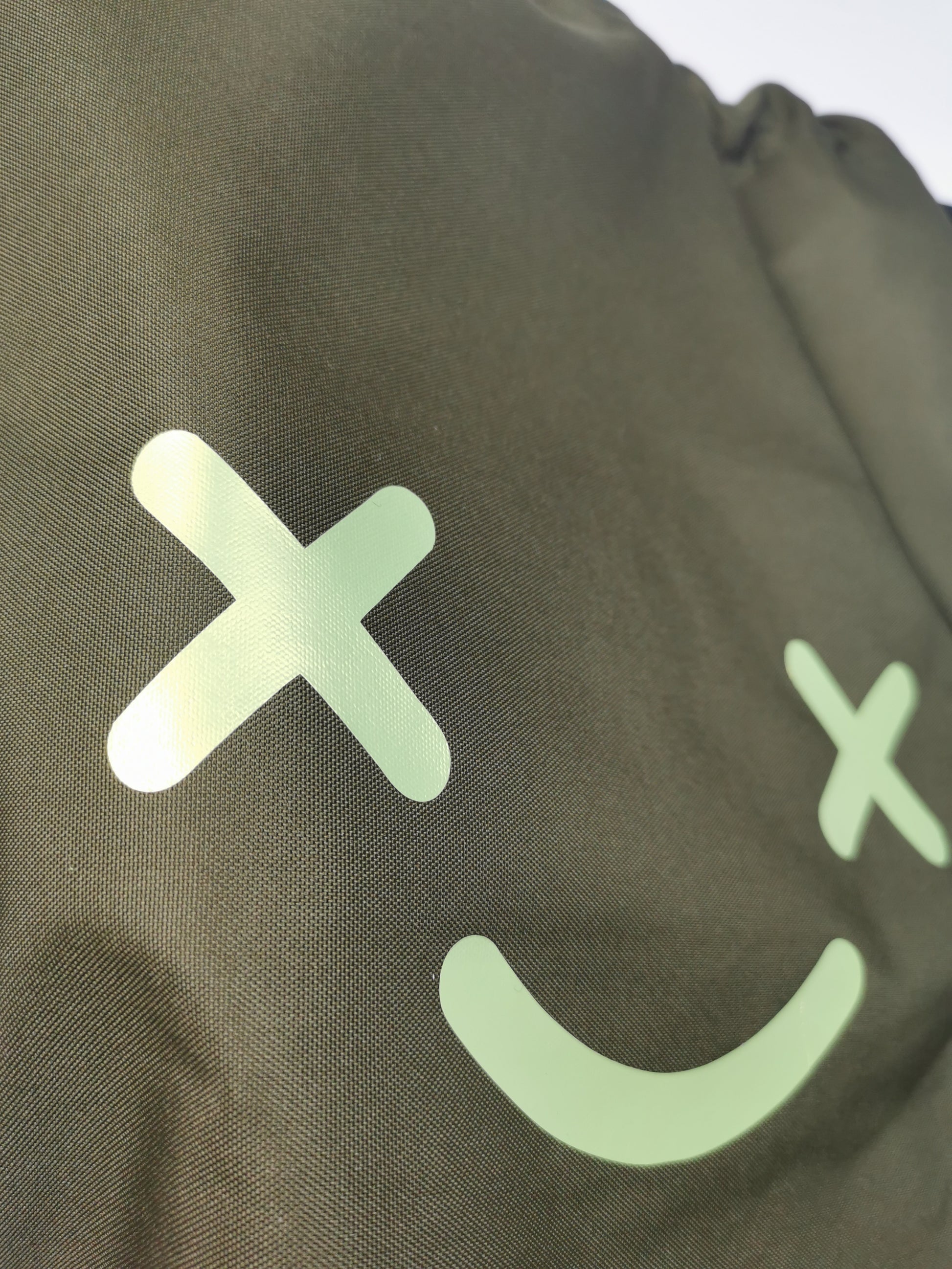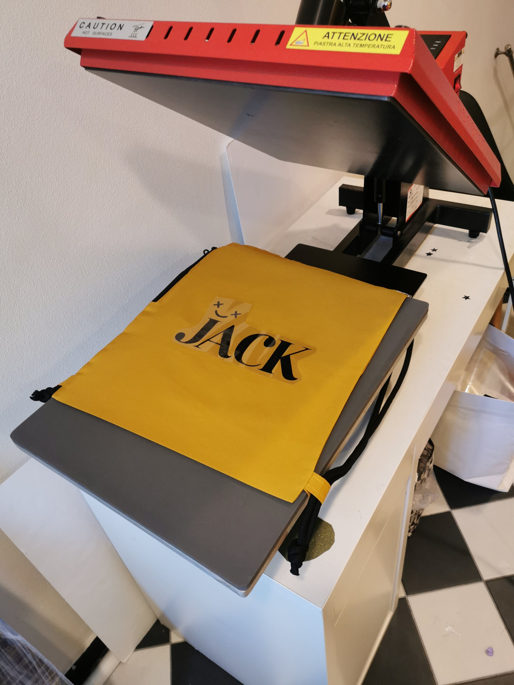 - Dietro: stampa serigrafica NOME/INIZIALE (personalizzazione) con vinili a scelta